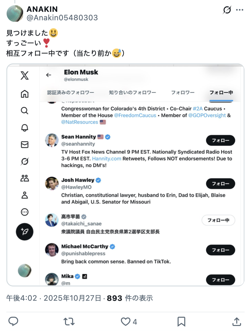 イーロン・マスクが、Xで高市早苗総理をフォローしていることが判明し、注目を集めています。