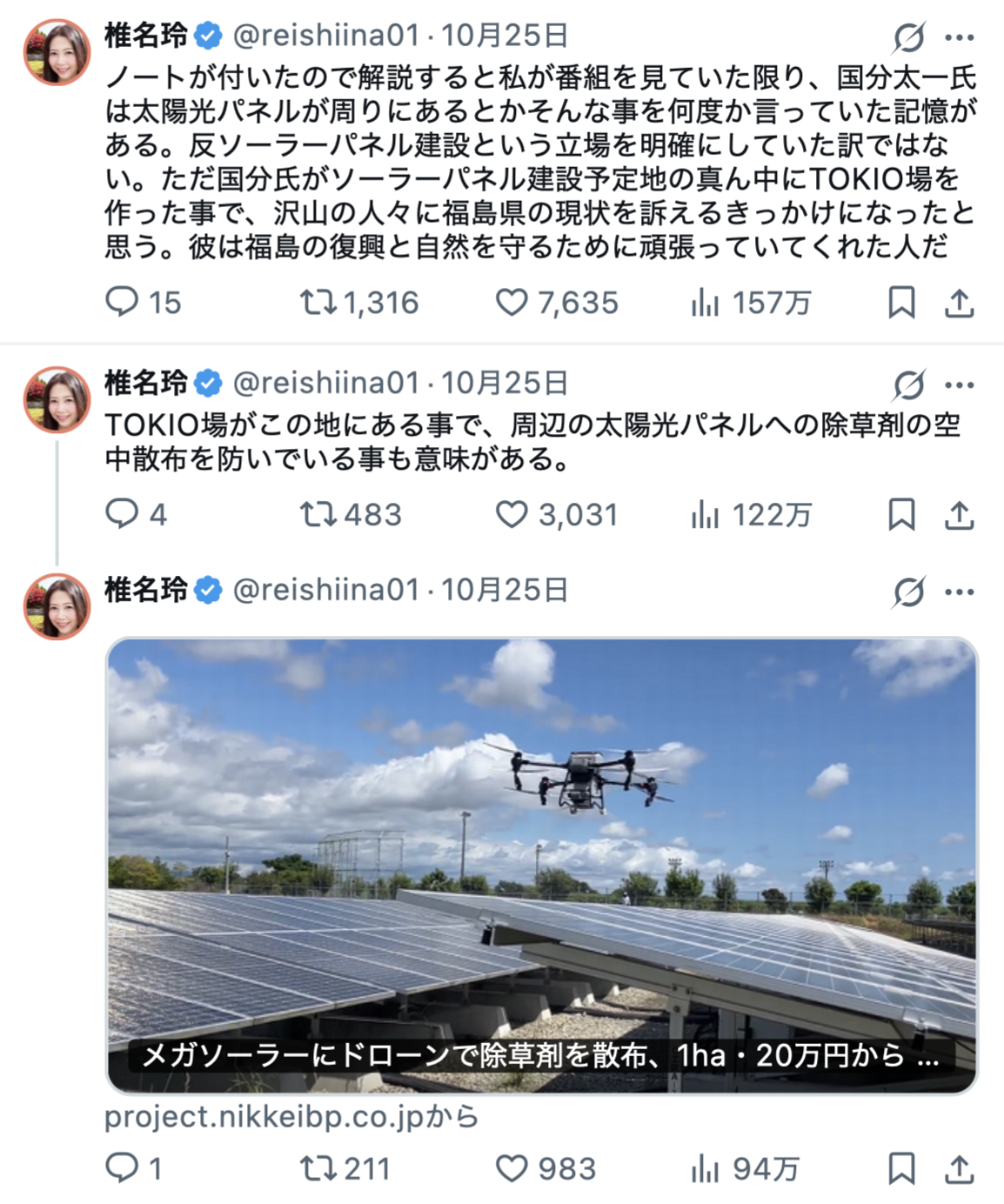 こうした状況から、メガソーラー発電所の事業者などがTOKIO-BAの土地を取得しようと、所有者である国分太一に関するスキャンダルを意図的にリークし、土地を手放さざるを得ない状態へ追い込んだのではないかと疑う声がネット上では上がっています。