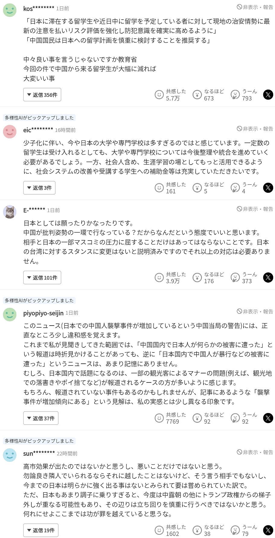 こうした状況を受け、SNS上では「今回の件で中国から来る留学生が大幅に減れば大変いい事」「日本としては願ったりかなったりです」「もっと友好国から学生を募った方が国益に繋がると思います」「ずっとそれを望んでいましたがあちらから自粛してもらえるとさらに助かります 」といった声が続々と投稿されています。